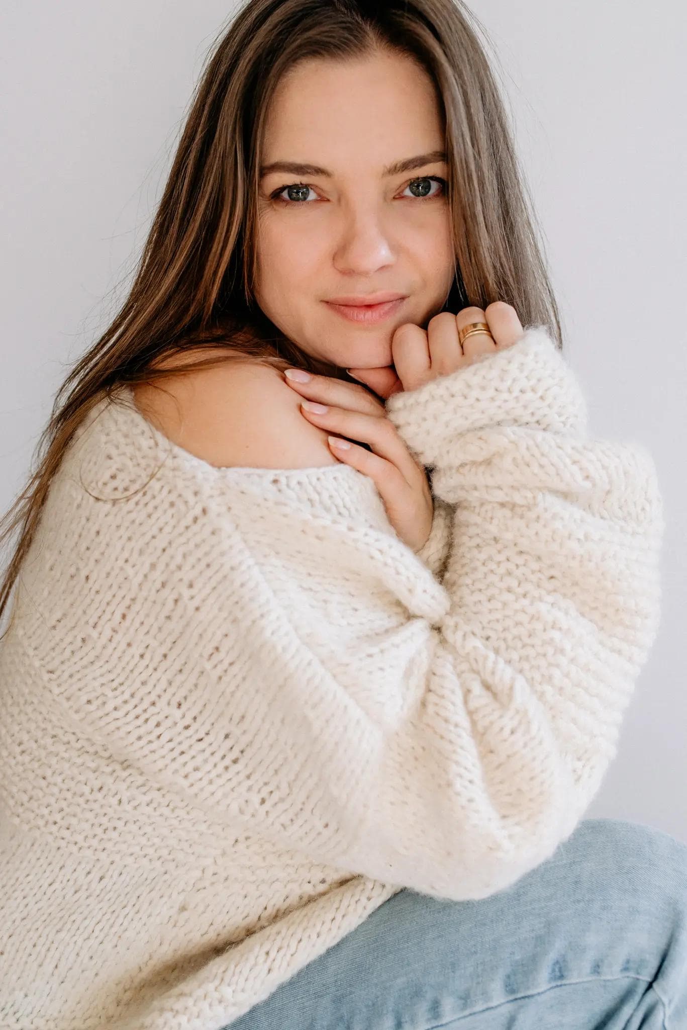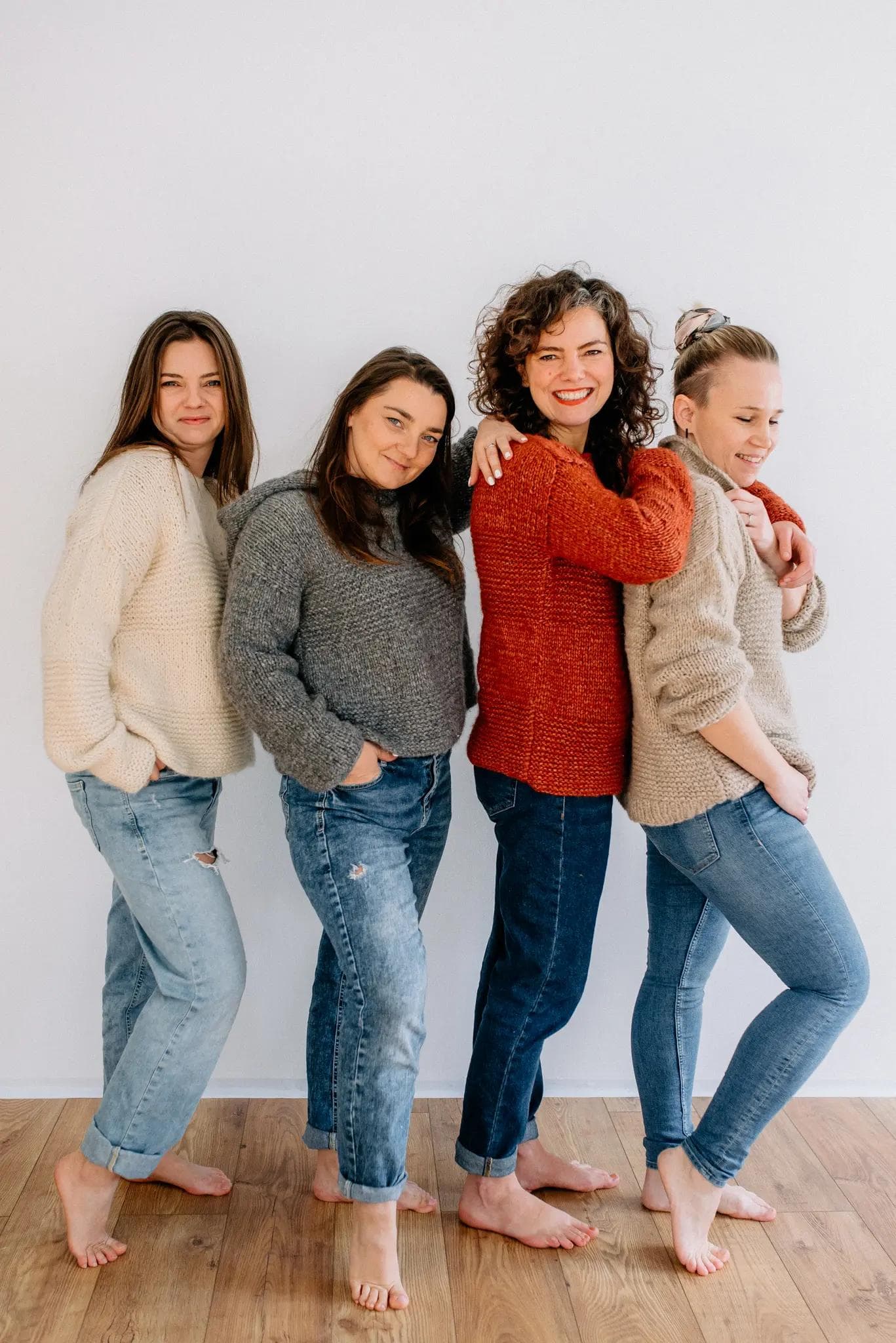Od początku tworzenia tego projektu miałam na uwadze, że każda z nas jest inna i każda czuje się dobrze w różnych krojach i rozmiarach. To takie oczywiste :) Mimo, że ten sweter wygląda na prawdę fantastycznie na każdej z nas (potwierdziła to sesja, na której każda z dziewczyn jest inna, a wyglądała obłędnie w każdej wersji ;) opowiadam w tym kursie i pokazuję, jak łatwo możesz dostosować ten projekt pod siebie, jeśli nie przepadasz za wersją oversize. Zawsze też chętnie odpowiem na Twoje pytania, jeśli będziesz miała wątpliwości :)