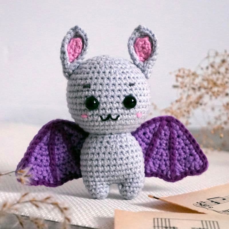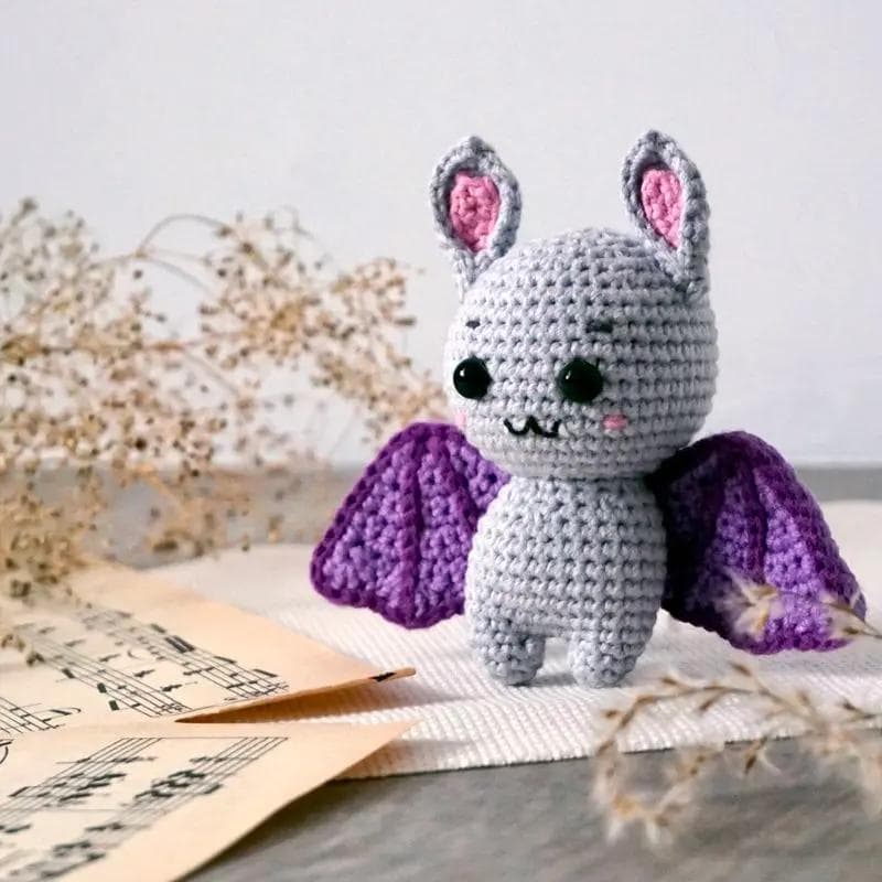 Znajdziesz w nim nowe sposoby tworzenia elementów amigurumi i z pewnością nauczysz się dużo ciekawych umiejętności :) A przede wszystkim stworzysz tak uroczego niedużego nietoperza :)