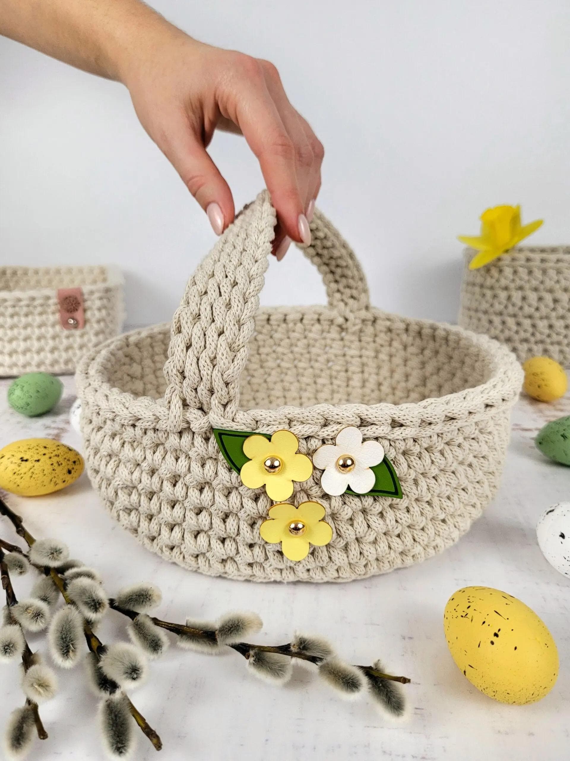 Ten koszyk jest modyfikacją tego poprzedniego, tylko tutaj zamiast dwóch uchwytów stworzysz jedną rączkę. Dowiesz się tutaj właśnie jak: