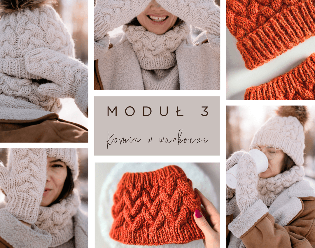 W tym module zrobimy cieplutki komin w warkocze, który idealnie sprawdzi się jako zestaw do czapki i rękawiczek.