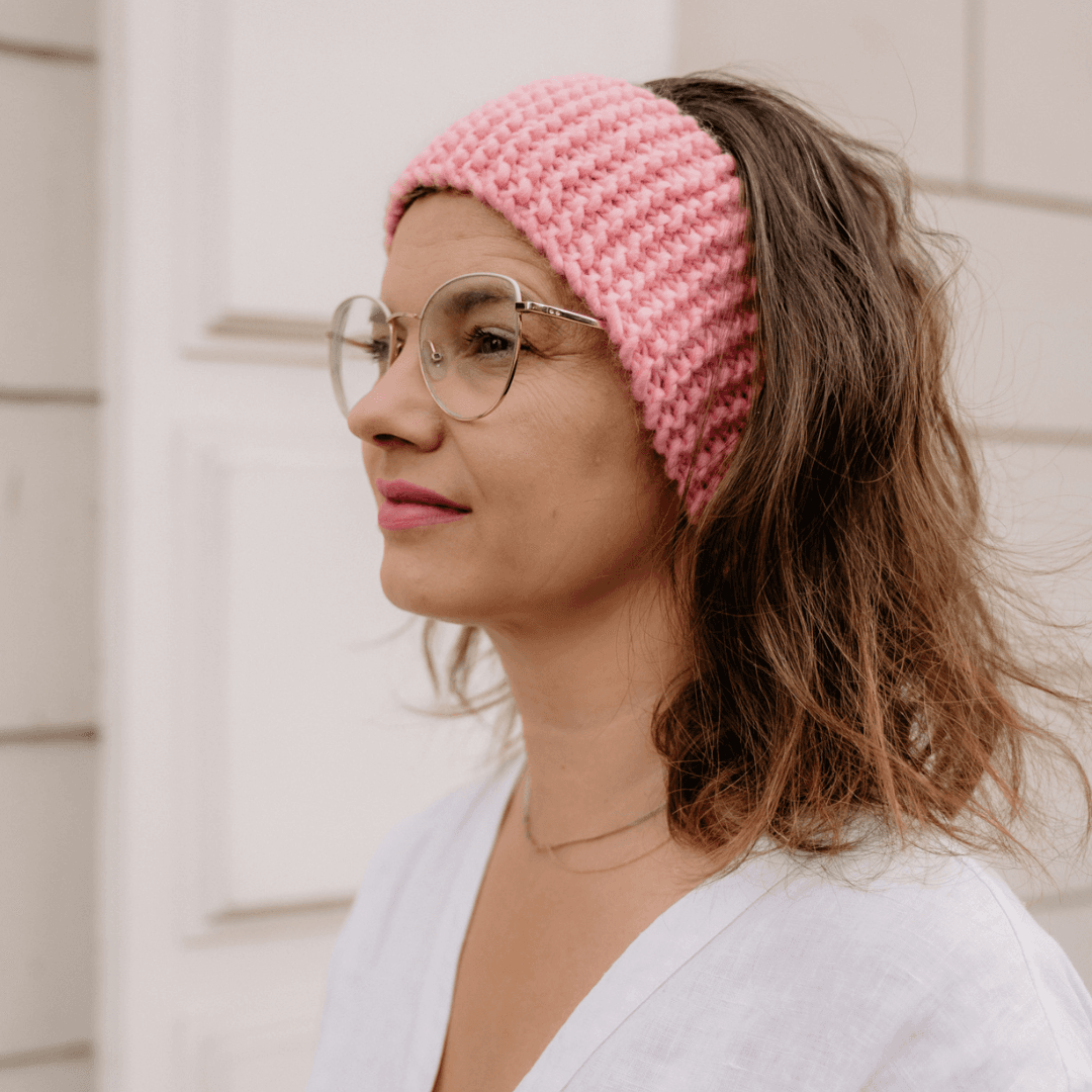 Zatem zapraszam Cię do bezpłatnego kursu video, w którym krok po kroku pokażę Ci jak zrobić taką opaskę na drutach! (także dla leworęcznych!)