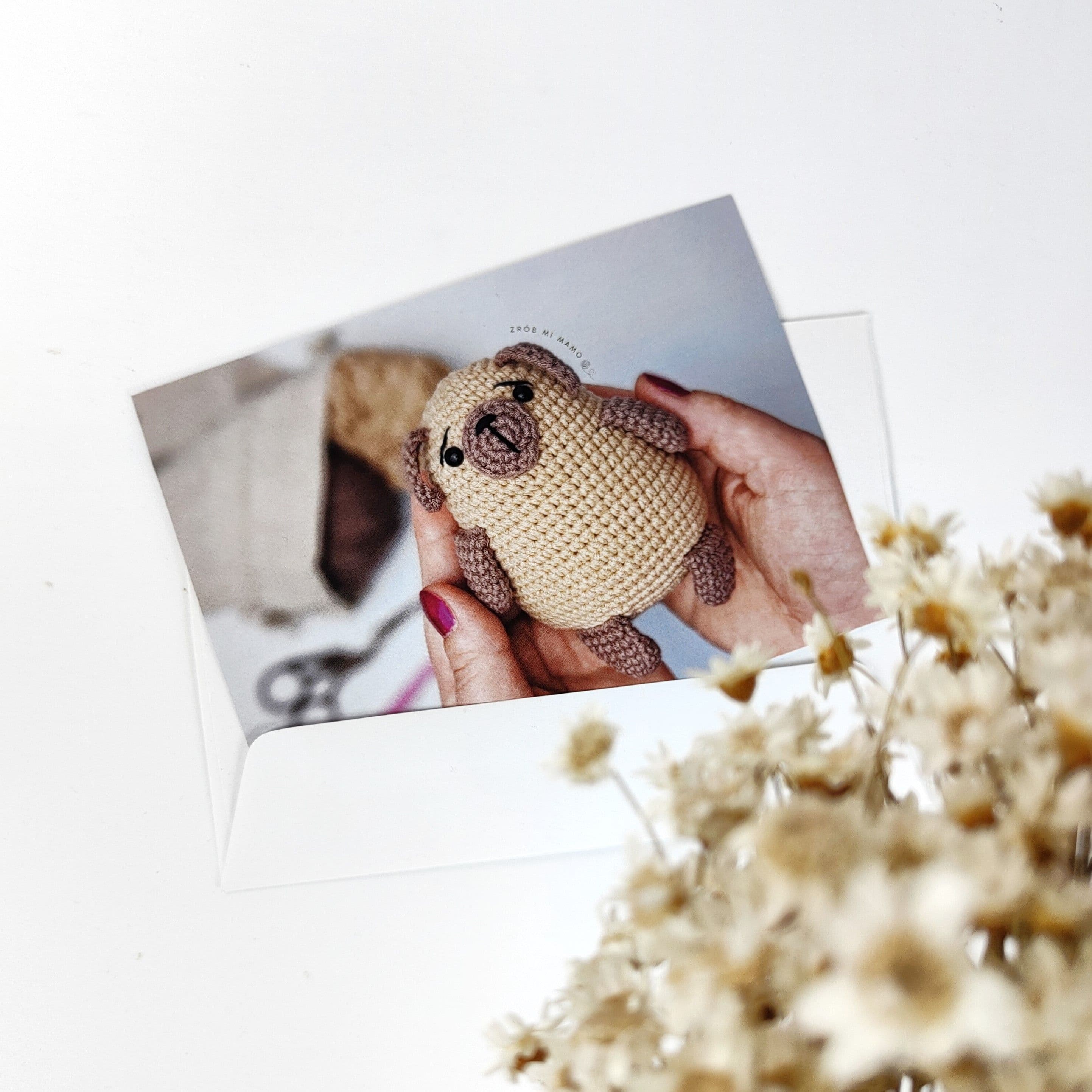 Za tą kartką kryje się cała historia. Bo skoro to Twoja pierwsza szydełkowa maskotka to możesz na tej kartce napisać słowa dumy dla samej siebie.