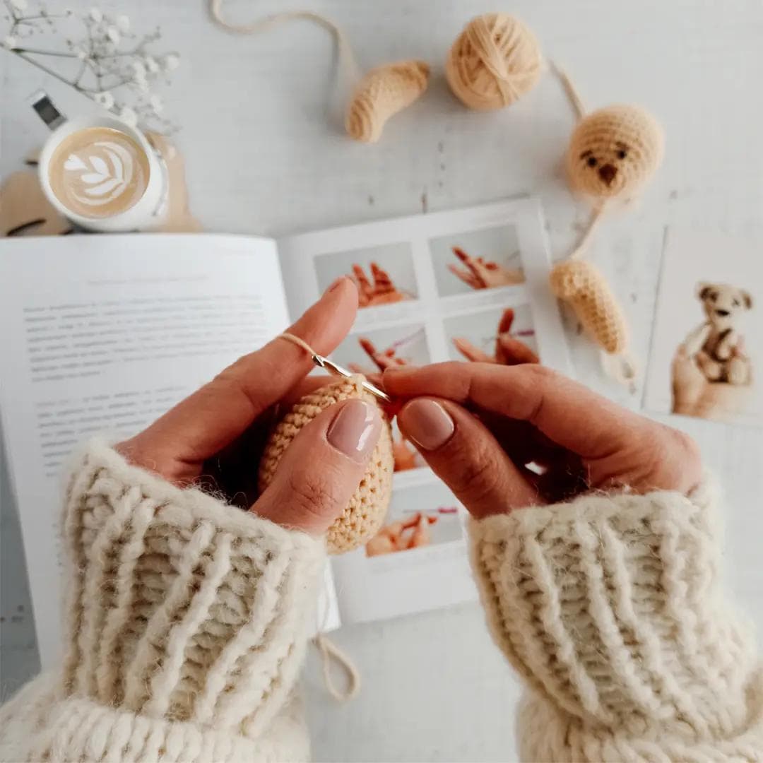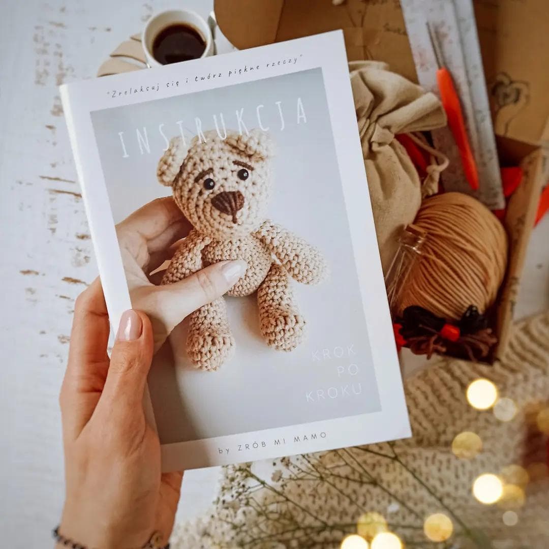 Pakiet materiałów + drukowana instrukcja do kursu „Twój pierwszy Miś na szydełku”