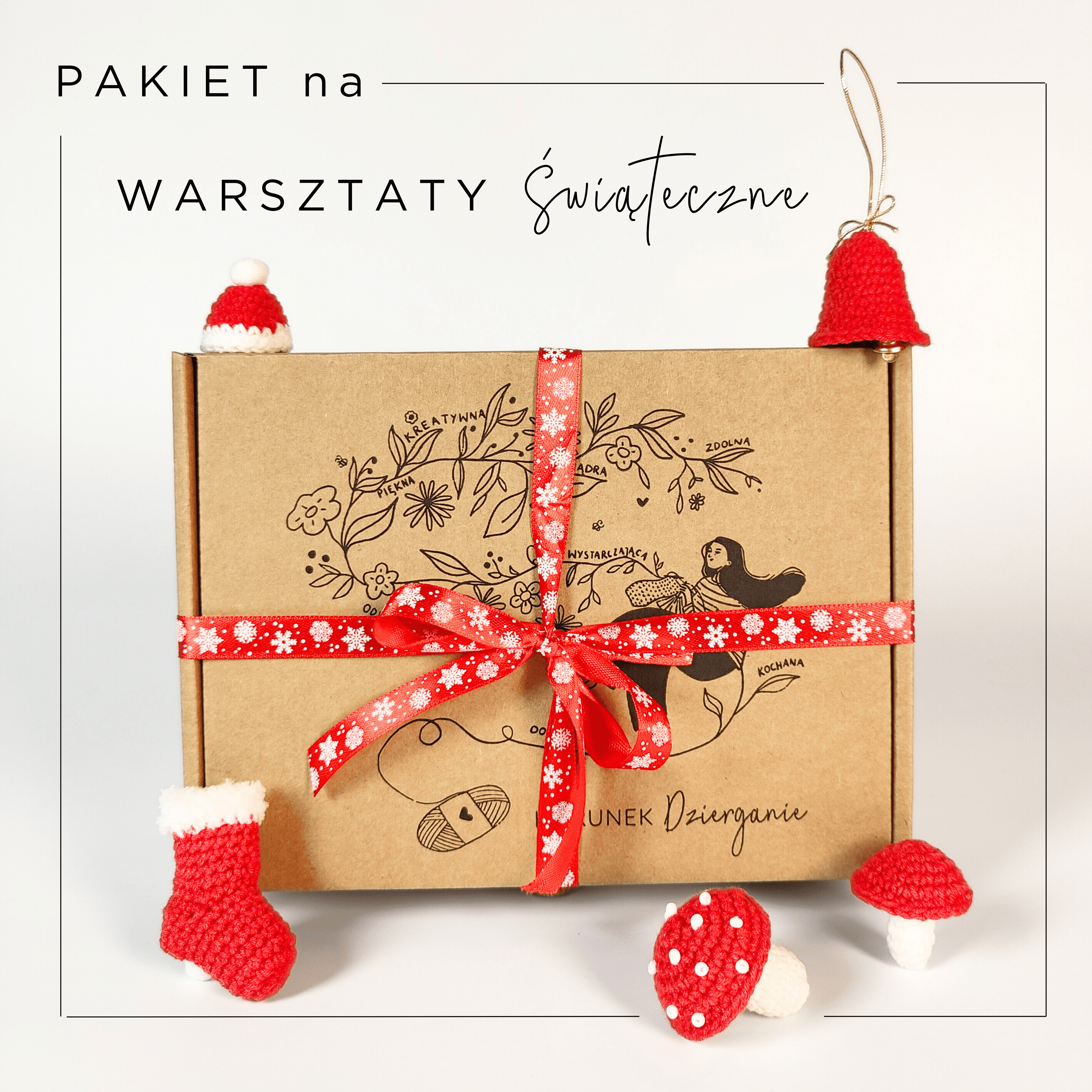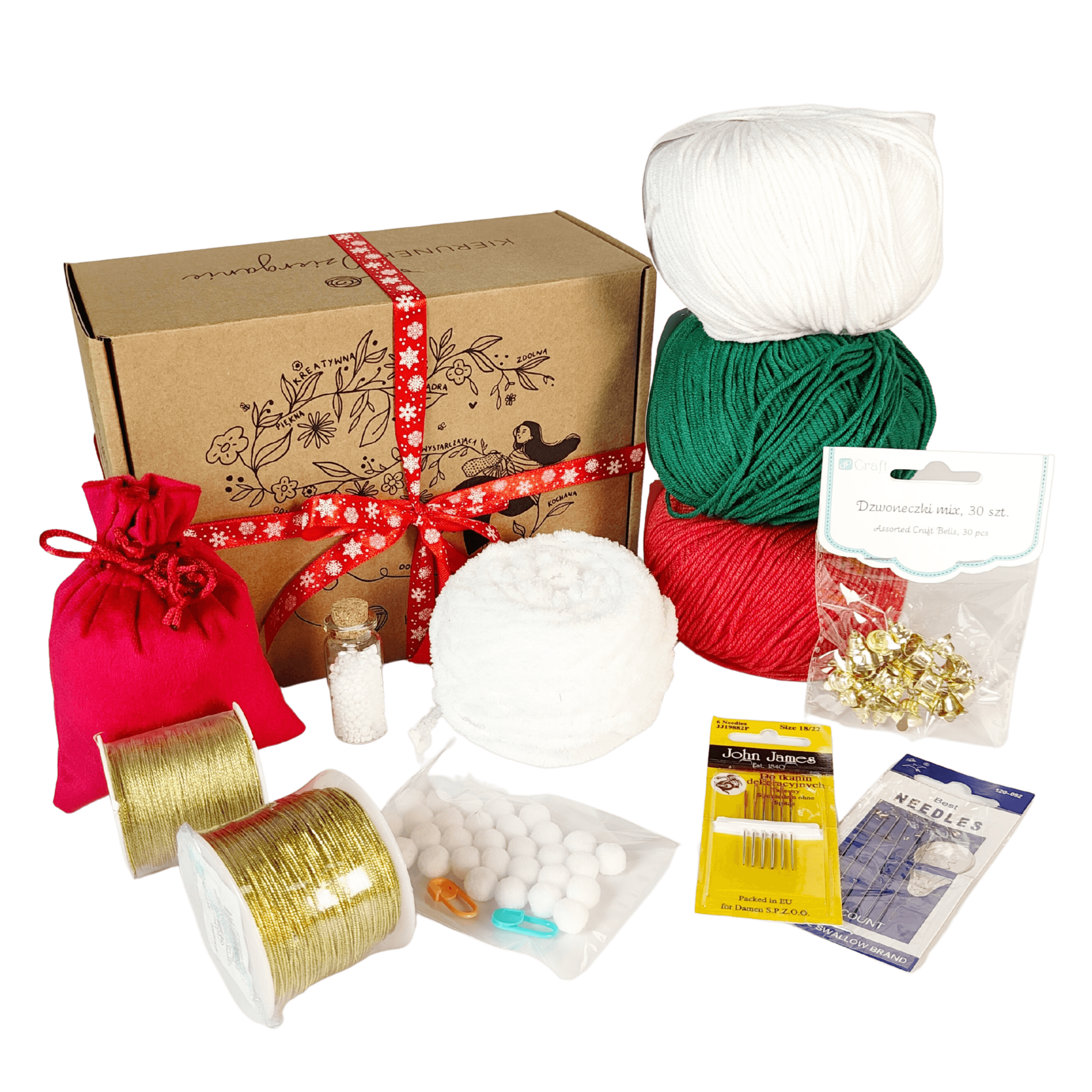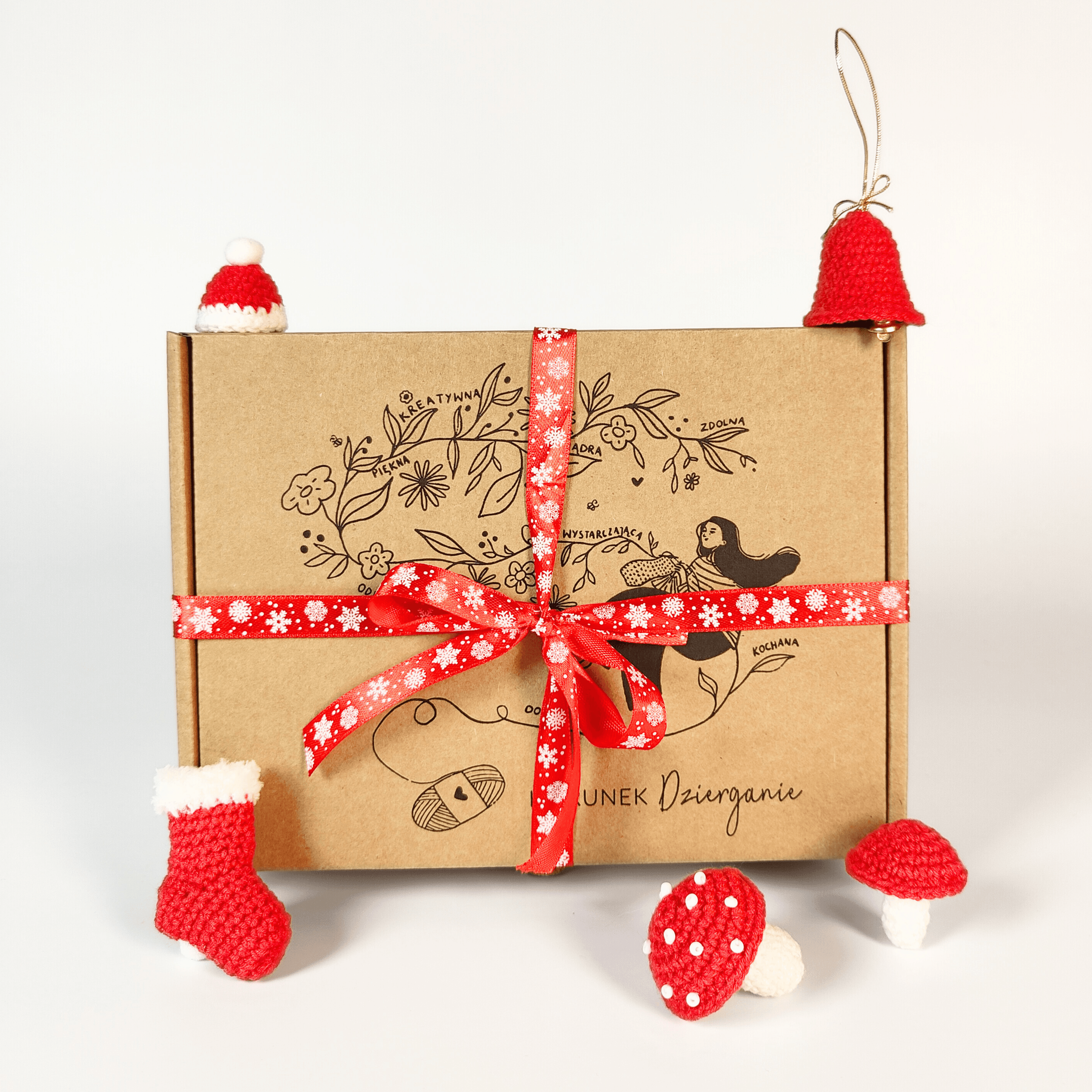 W tym pięknym pudełeczku znajdziesz wszystko na Twoje ozdoby świąteczne (prócz szydełka, które większość z Was posiada, a można je w razie czego dokupić osobno o tutaj: szydełko 2,5-2,75mm :)