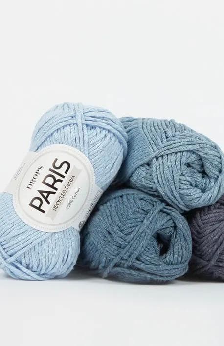 Włóczka DROPS Paris jest miękka w dotyku i ma subtelny rustykalny wygląd. Jest dostępna w 2 rodzajach: jednokolorowa (uni colour) w 100% z czesankowej bawełny oraz w 100% z bawełny z recyklingu (recycled denim).